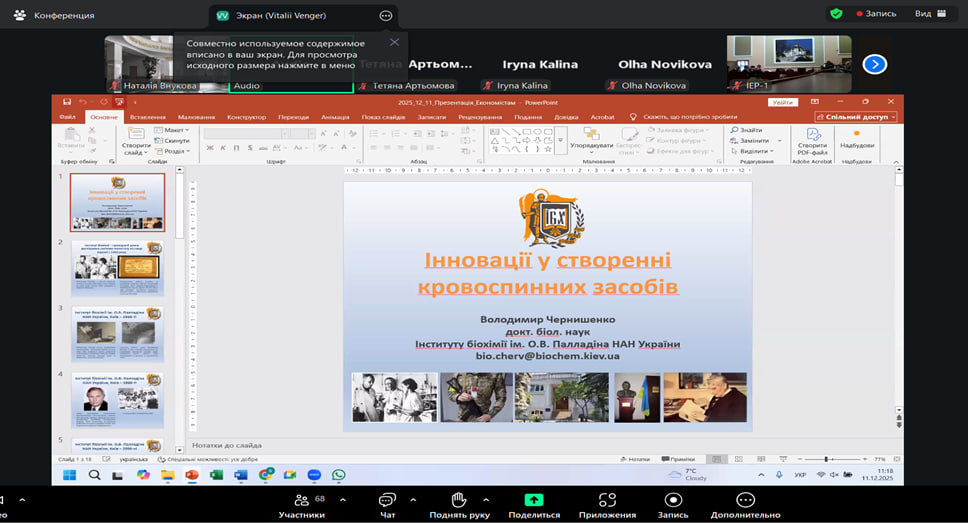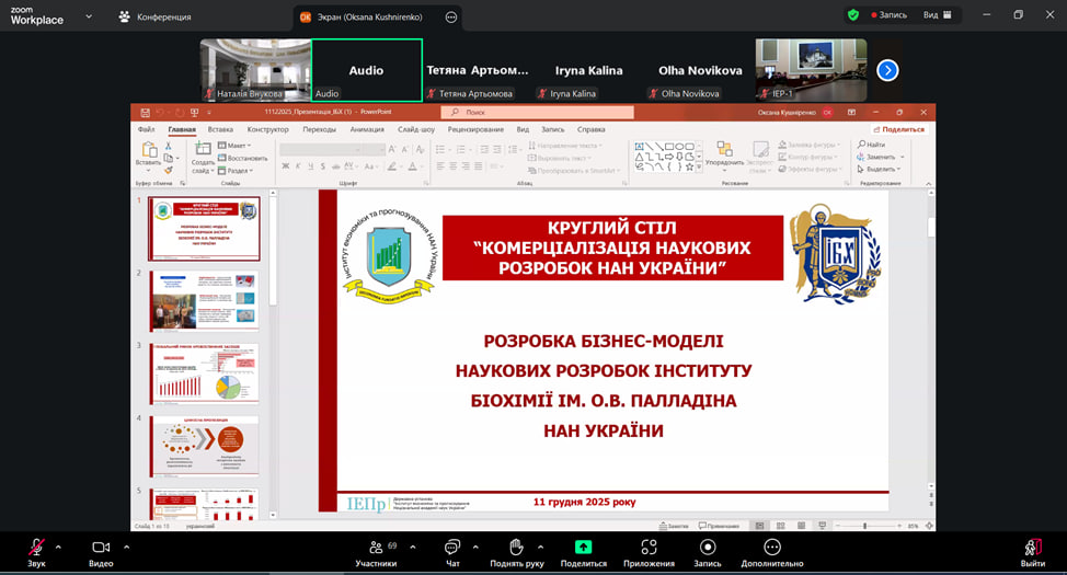 Провідний науковий співробітник НДІ ПЗІР НАПрН України, д.е.н. Наталія ВНУКОВА 11 грудня 2025 року взяла участь у Круглому столі на базі Державної установи «Інститут економіки та прогнозування Національної академії наук України «Комерціалізація наукових розробок НАН України».